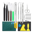 This set of weeding tools including 2pc tweezers, 4pc scrapper and 2pc hooks or picks, 1 stainless steel ruler 1pc silver hobby knife with safety cap and 10pc 11#replacement knife blades. 1pc Stainless steel scissors.2pc Spatula 1pc A5 black zipper bag.1Pc Awl.1Pc A5 cutting mat. For easy store and carry-save space. Get it all in one bag. The high-quality tool is made of stainless steel, free from rust and corrosion, strong and durable, and not easy to creep. Easy to carry and use.Perfect for papercraft, Adhesive
