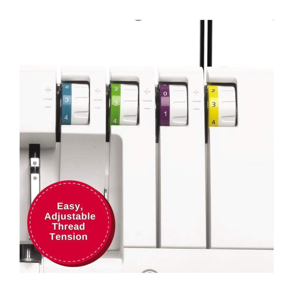 The adjustable differential feed prevents stretching on knits and puckering on delicate fabrics. It ensures even stitching and smooth finishes for all fabric types.
