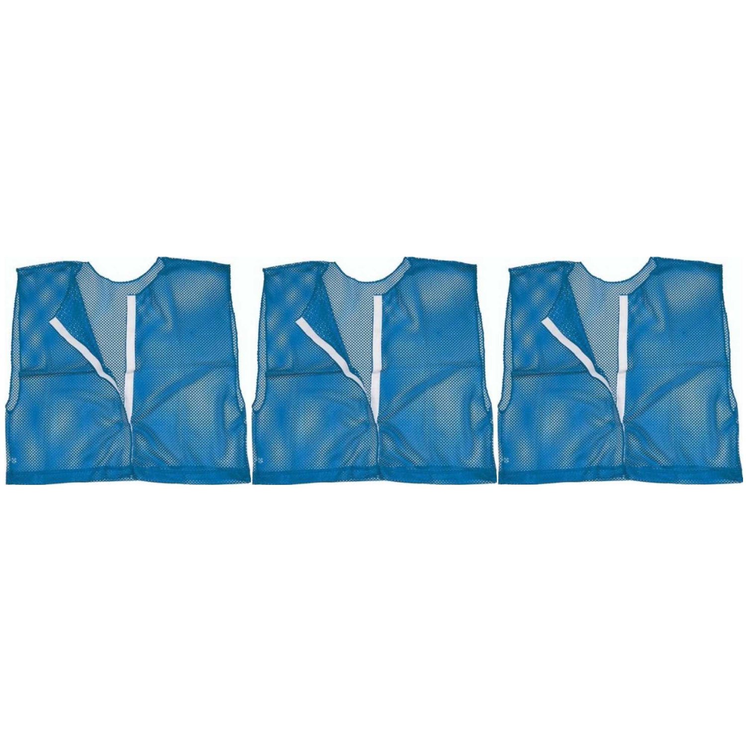Adult size. Deluxe heavy-duty mesh scrimmage vest with hook-and-loop front closure for easy on, easy off. XL pattern for any size athlete. 27''L x 28''W. BLUE