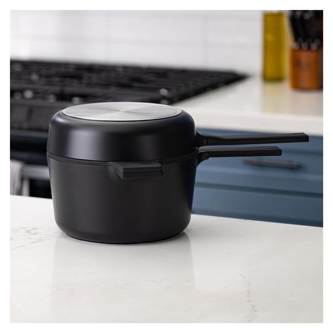 of the Neat Cookware Set, featuring stackable components that prevent scratches