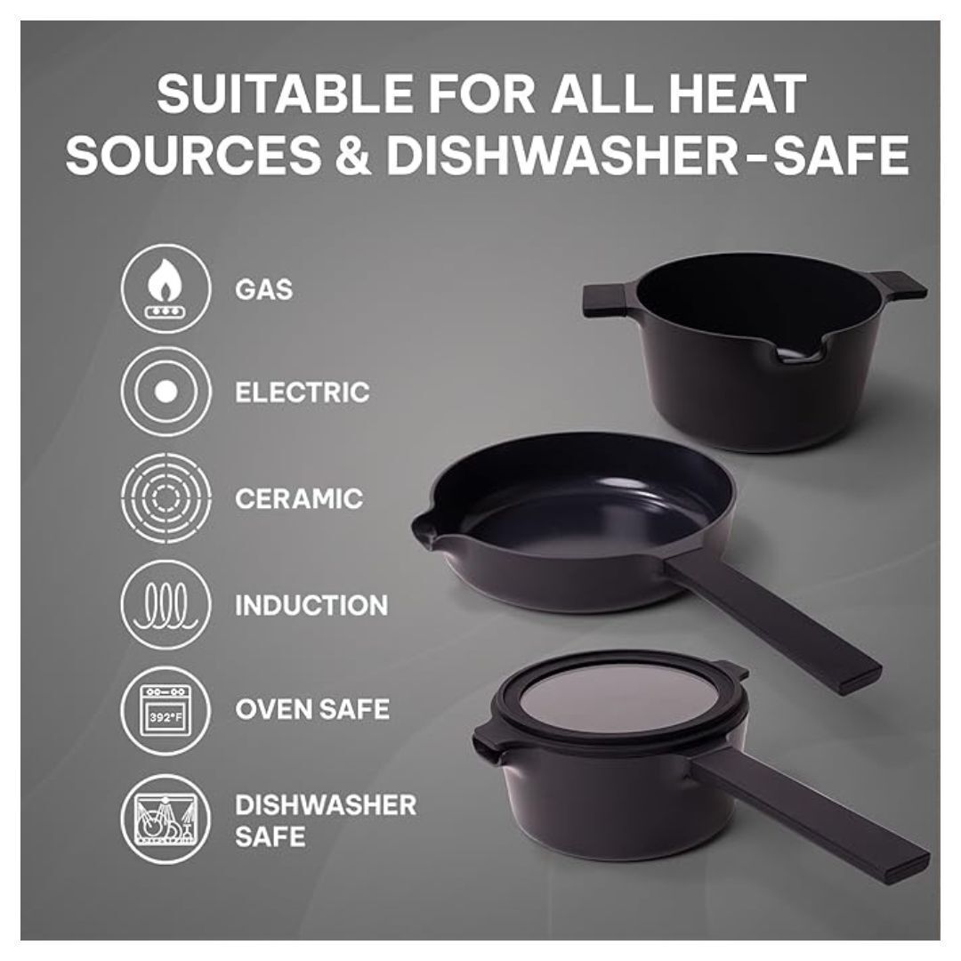 Cookware Set in Black. Designed for modern kitchens, the cookware offers