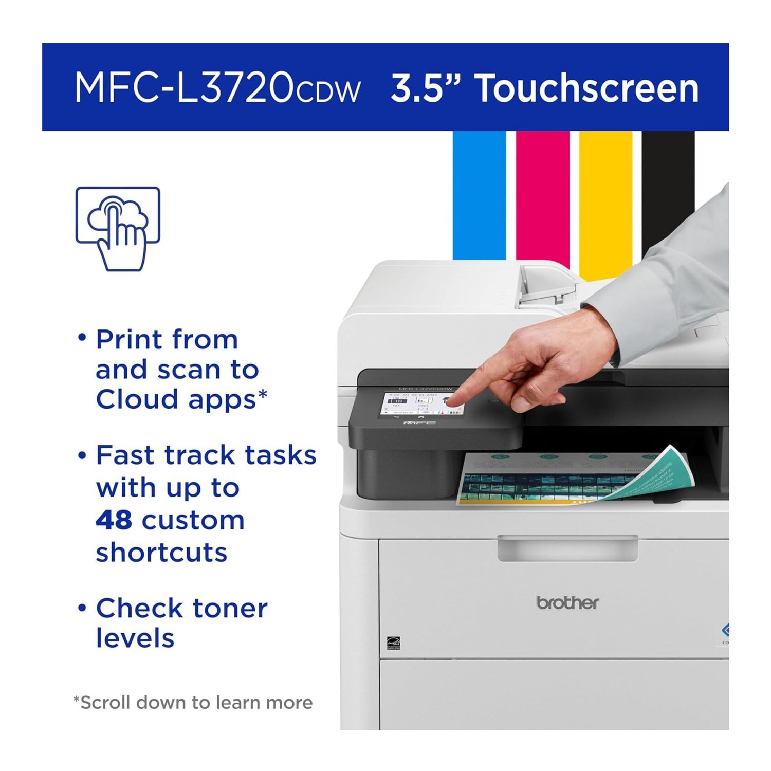 Brother MFC-L3720CDW Color All-in-One Laser Printer, Network Ready (White)