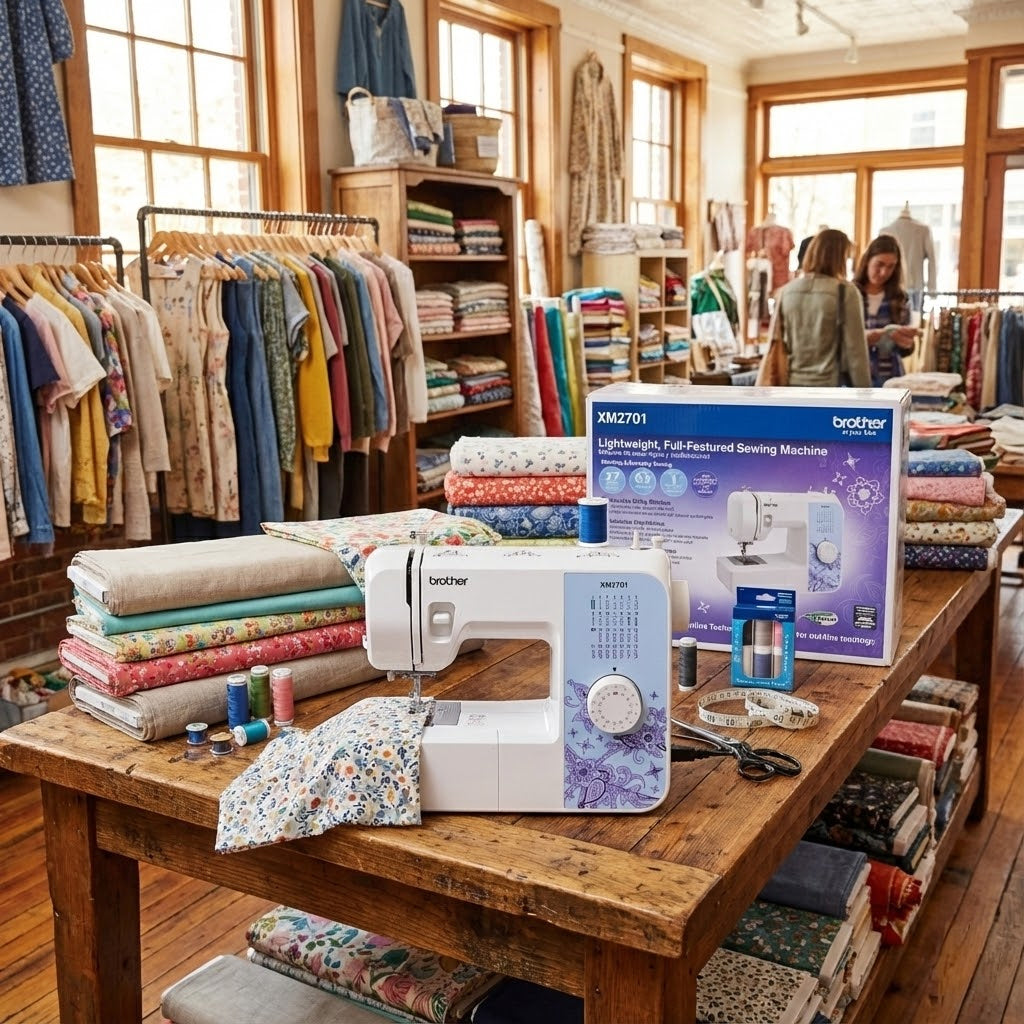 The Brother XM2701 is perfect for beginners learning to sew and for more advanced sewers looking for versatility. Loaded with features, the XM2701 offers 27 built-in stitches, with 63 stitch functions. Included are blind hem, decorative, and quilting stitches, with an automatic one-step button holder for virtually perfect buttonholes. Included are 6 quick-change sewing feet, including a buttonhole, zipper, zigzag, narrow hemmer, blind stitch, and button sewing foot. Designed for ease of use, the XM2701 comes with a built-in easy needle threader, jam-resistant Quick-Set top drop-in bobbin, and an automatic bobbin winding system. Includes instructional DVDs and English and Spanish user manuals.