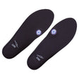 The recessed area under the first metatarsal head accommodates the plantar-flexed first ray and allows hindfoot eversion, unlocking the subtalar joint. The elevated heel works to cushion heel strike force and tight calf musculature. The DonJoy Arch Rival orthotic inserts are manufactured with X-Static Technology, an anti-odor, thermodynamic material that actively eliminates odors. Silver-coated fibers woven into the surface layer help distribute heat throughout the orthosis which decreases friction and hotspots, and helps prevent blisters and odor. The inserts are intended to fit most athletic and walking shoes. Because of the wide range of shoe styles, these orthotics are designed with excess material length-wise, allowing them to be trimmed at the toe area for a custom fit. Simply place your foot on the insert to ensure the ball of your foot is properly aligned to the recessed circle before cutting. It includes one complete pair of orthotic inserts (one left foot and one right foot).