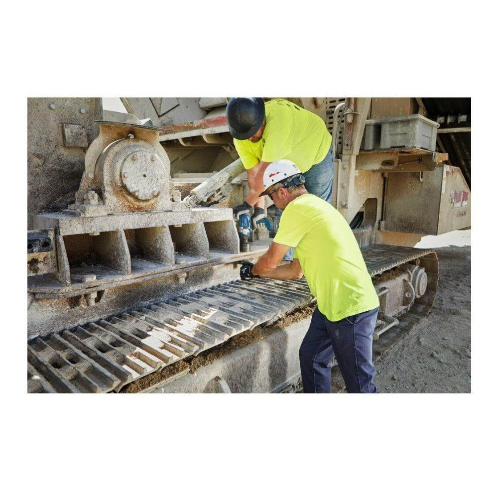 BITURBO Brushless Technology is a high-performance motor and drivetrain system designed to deliver power comparable to high-demand corded tools. The tool delivers up to 770 feet lb fastening torque and 1,250 feet lb breakaway torque while maintaining a long runtime. It offers controlled power output with three speed/torque settings (0-800, 1,200, and 1,750 RPM). The wrench features a rubber head casing that protects the workpiece and tool from damage.