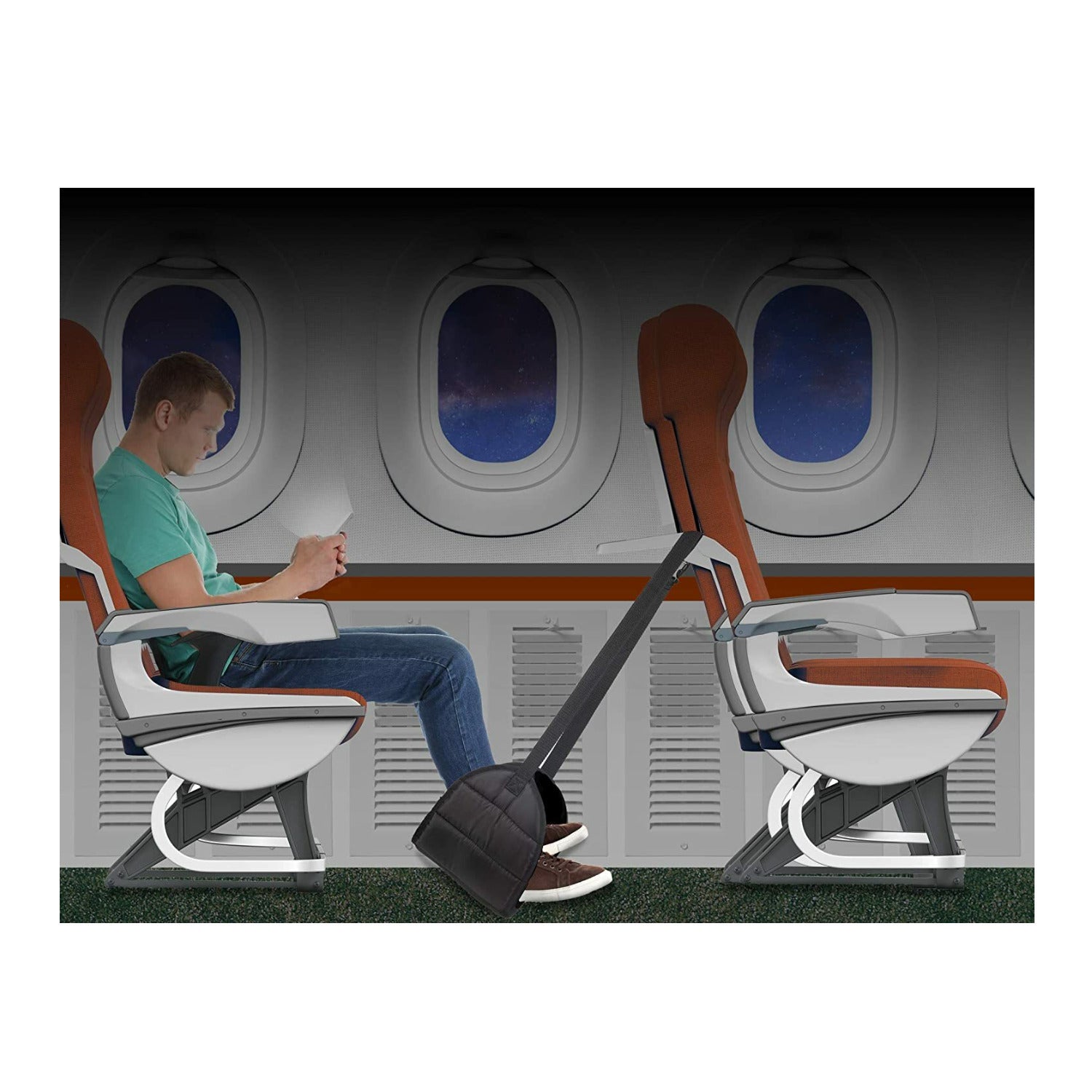 The airplane foot hammock with adjustable straps will always suit exactly your height for the best comfort. You can even use the airplane footrest for travel with the tray table up as well as down. Suitable for all heights especially recommended if your feet do not reach the floor when seated. Simply hang the straps on the arms over the tray table in front of your seat and place your feet in the footrest.