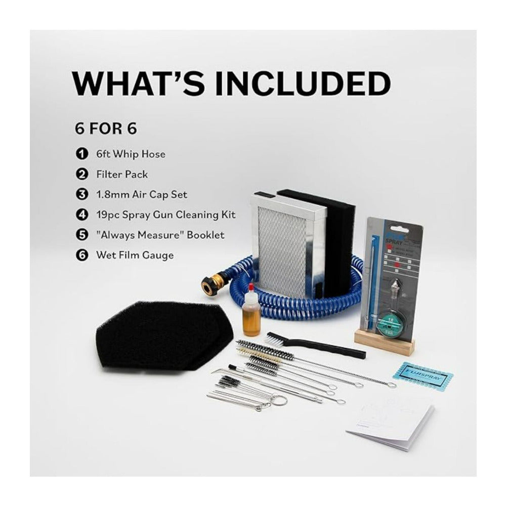 D6 delivers the power to spray almost any coating undiluted, including lacquers, polyurethane, high viscosity paint and primers, and new 2K finishes. For those seeking ultimate control of the system itself, the Fuji Spray T-Model is the perfect complement. Featuring a side pattern control, dial in your spray fan from a fine mist to a wide fan and everything in between, precisely matching the spray pattern to your project. The lightweight design and effortless Easy Pull Trigger minimize operator fatigue, even during extended use. Built to last, the T-Model boasts 100 percent stainless steel fluid components, stainless steel springs, durable metal knobs, a convenient rear rotating nipple for pressure tubes, and an ergonomic, stay-cool handle. Equipped with a 1-quart bottom feed cup, ideal for medium to large projects like cabinets and furniture, and a 1.3mm Air Cap Set, perfect for fine finishing, the T-Model delivers superb atomization and unparalleled control, putting the perfect finish in the palm of your hand.