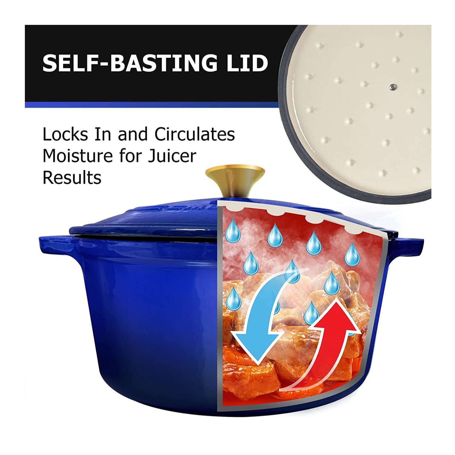Mueller DuraCast 6-Quart Enameled Cast Iron Dutch Oven with Lid and Heat Retention (Blue)