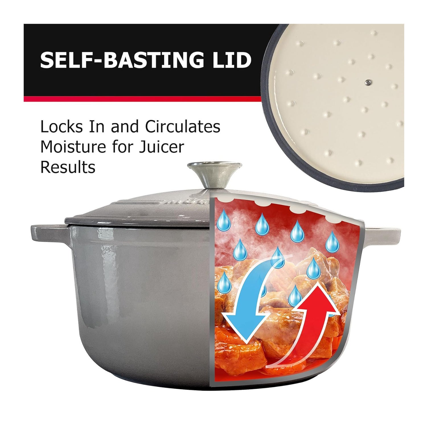 Mueller DuraCast 6-Quart Enameled Cast Iron Dutch Oven with Lid and Heat Retention (Grey)