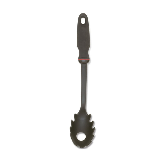 The Norpro Grip-Ez Spaghetti Fork is compatible with nonstick cookware. The handle has a patented shape, ergonomically designed to fit perfectly for right and left-hand use. It also features a sleek design with a hang hole to easily hang on hooks. Also fits nicely in kitchen drawers or in utensil holders.
