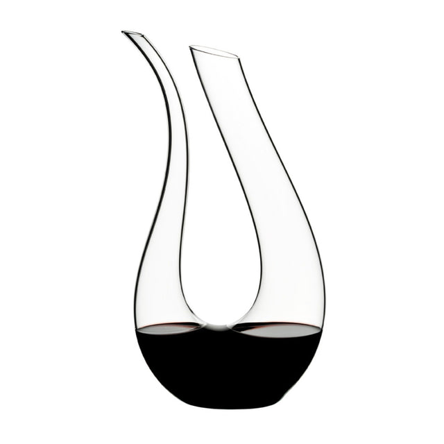 The unique design of Riedel Amadeo Decanter makes it a perfect conversation starter and an elegant table centerpiece for any occasion. Its sculpture-like design imitates the shape of a harp and is a favorite with wine connoisseurs. Made by hand and mouth-blown from crystal, this decanter will enhance any wine-drinking occasion and is suitable for all kinds of wine - white, red or sparkling.