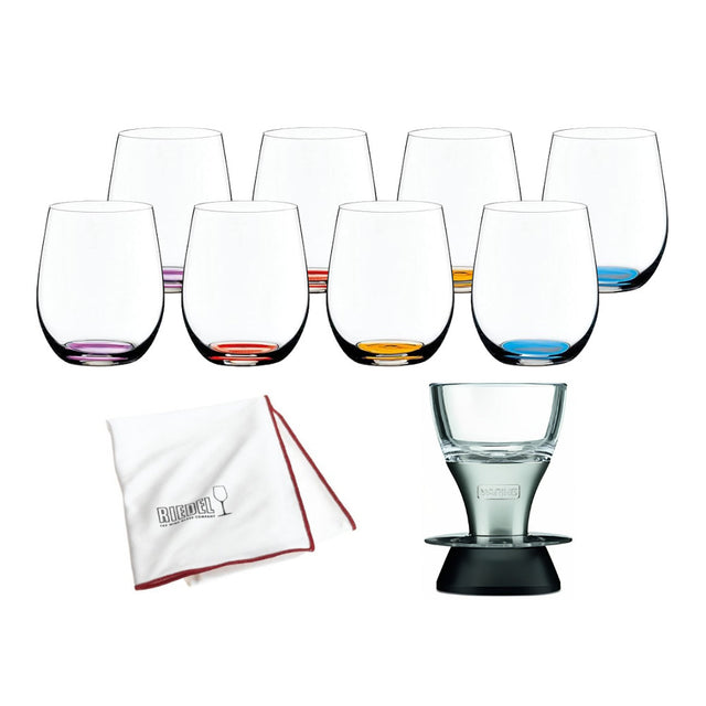 Riedel O Wine Tumbler Happy O (8-Pack) with Polishing Cloth and Wine Aerator
