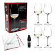 Riedel Grape White Wine or Spritz Glass (Set of 4) with Cloth and Wine Pourer