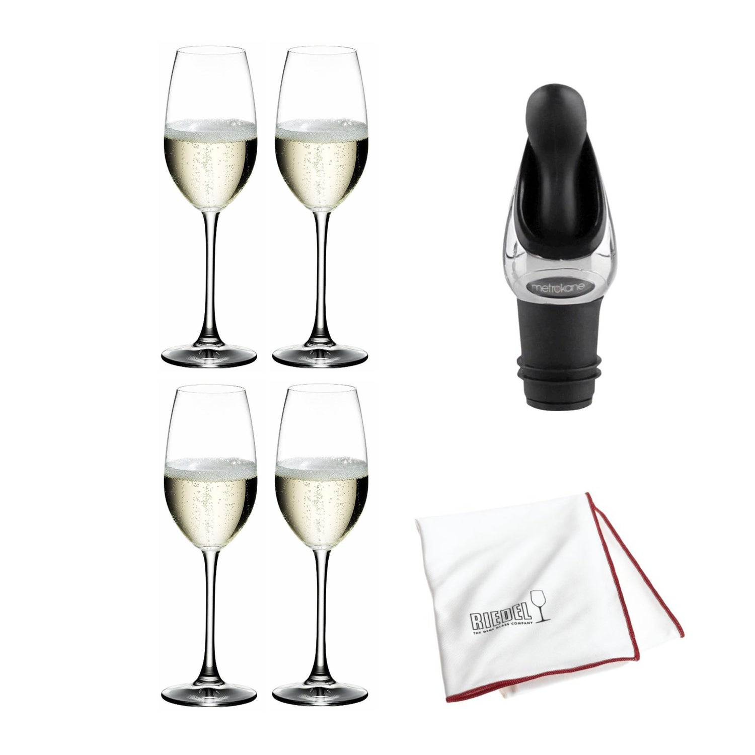 Riedel Ouverture Champagne Glass (4-Pack) with Wine Pourer and Polishing Cloth