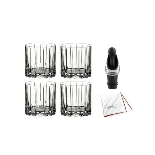 Riedel Drink Specific Glassware Rock Glass (9 oz, Clear) 4-Pack with Wine Pourer