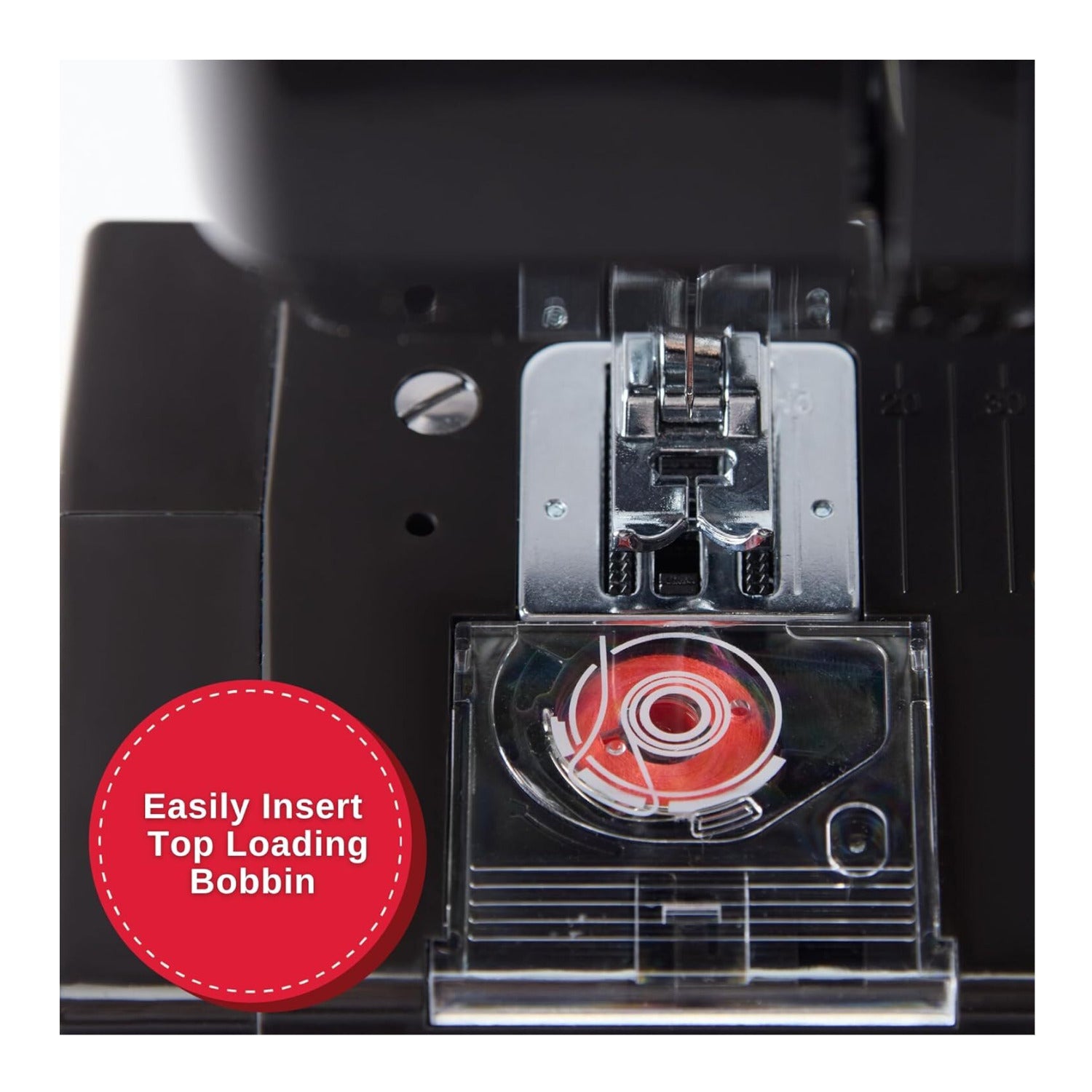 Transparent bobbin cover allows easy thread monitoring and quick setup, helping avoid interruptions during sewing. Great for beginners.