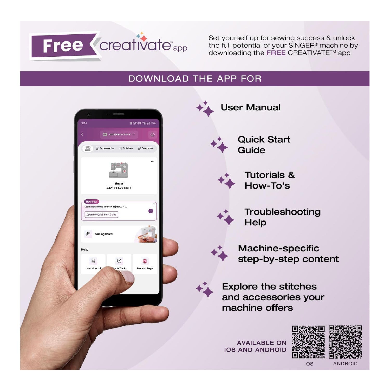 Comes with an all-purpose foot, transparent Class 15 bobbins, extra needle, and manual threader—a $25 value to jumpstart your sewing journey