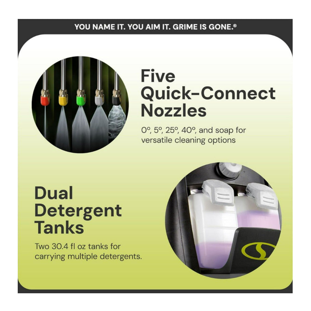 • Sun Joe 13-AMP Electric Pressure Power Washer with 2030 PSI, 1.2 GPM, and Dual Detergent Tanks