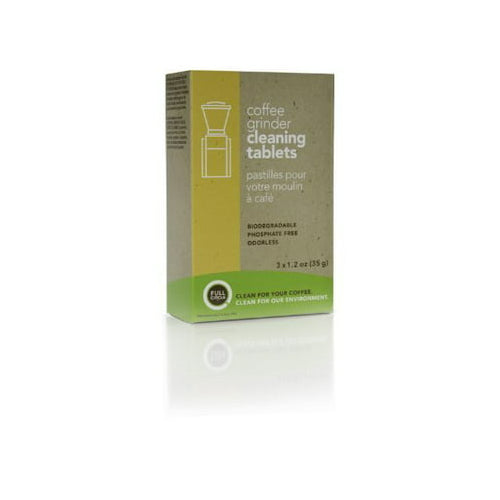 The Urnex Full Circle Biodegradable Coffee Grinder Cleaning Tablet keeps your coffee grinder clean and free of oily residues that can create a bitter-tasting brew. These easy-to-use tablets do it the natural way, with formulations that clean effectively without harmful chemicals. They are biodegradable, phosphate free, and odorless. You can use these full circle coffee grinder cleaning tablets once a month or when switching between flavored, decaffeinated, and regular beans.