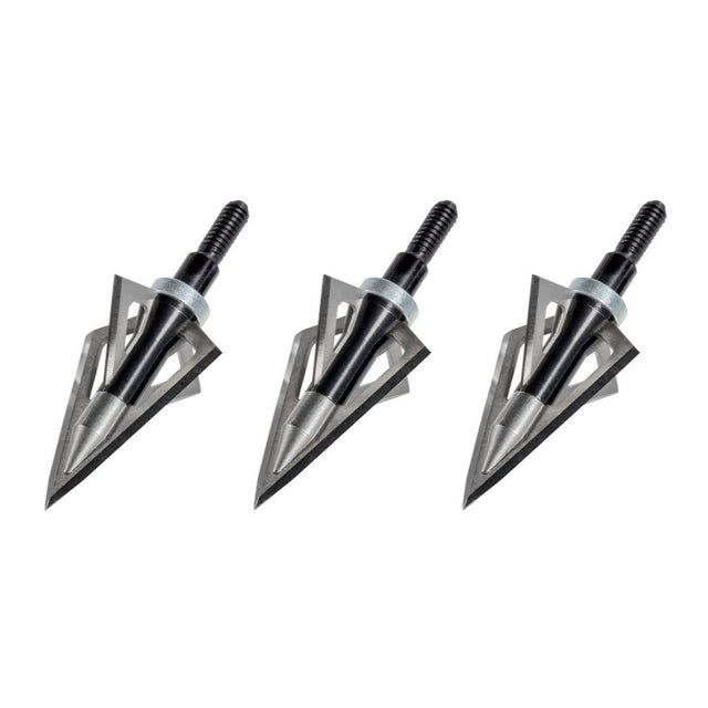 The Wasp SharpShooter Traditional 150-Grain Broadhead Arrow is designed with a cut-on-contact blade-locking system which utilizes a hardened stainless steel forward section that aligns the main blade to the ferrule, eliminating misaligned blades and poor arrow flight. The SharpShooter has a 1-inch cutting diameter with 0.040-inch main blades and 0.027-inch bleeder blades. Bleeder blades are replaceable. Weighing in at 150 grains, this broadhead will not only serve traditional and recurve archers well, but also modern archers who shoot ‘speed bows’ with the properly spined arrow. These 150 grain broadheads will help with FOC. The pack contains 3 broadhead arrows.