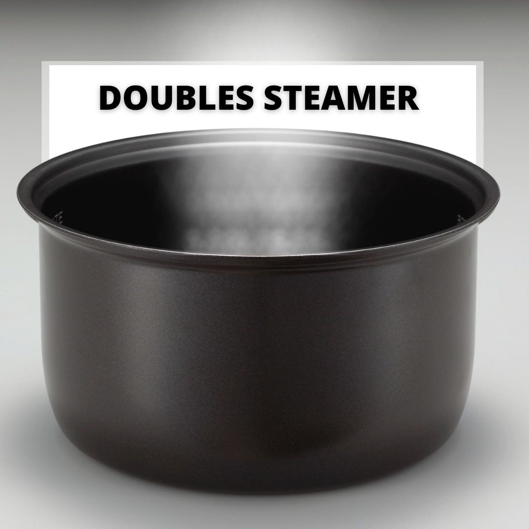 The Micom Rice Cooker and Warmer has been carefully designed to meet your highest expectations: its LCD control panel is easy to read and operate, its thick cooking pan and heating system ensure even cooking, while its inner lid conveniently detaches for cleaning. Storage is simple too thanks to the built-in retractable cord storage system and convenient carry handle.