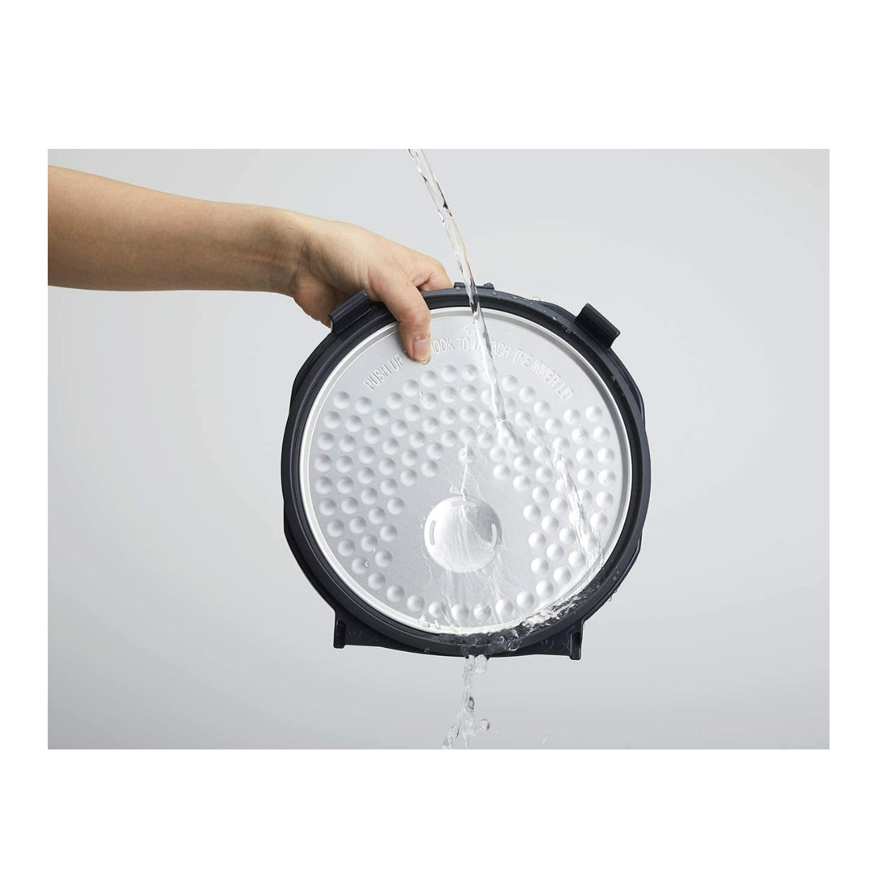 Easy-to-clean nonstick coated inner cooking pan (1.5 mm thick) with water measure markings. It also features a detachable and washable inner lid that is easy to clean.